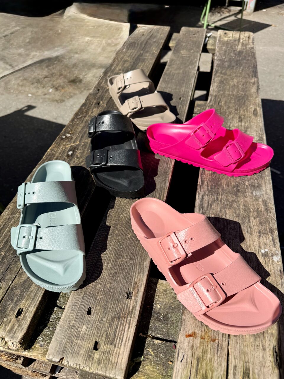Der Arizona, der Madrid Big Buckle und natürlich auch die stabile EVA-Variante, perfekt für den Strand, Yoga oder den Garten. Alle made in Germany.